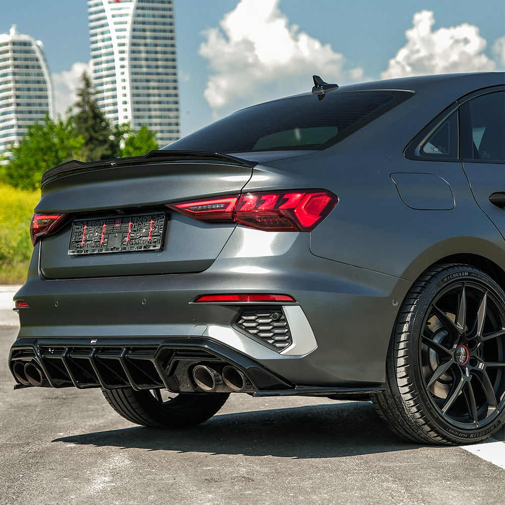 Sophisticated Glossy Black Finish: Add a touch of sophistication and style to your Rear Side Splitters AUDI S3 with our Rear Side Splitters's glossy black finish. This elegant touch not only elevates the aesthetics but also ensures your vehicle stands out with a bold statement on the road.